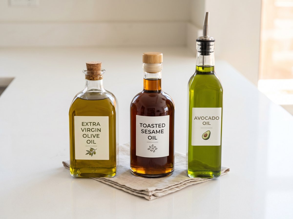 挑選食用油不用想得太複雜,掌握幾個原則就好:高溫料理用煙點高的油,涼拌用營養價值高的油,日常炒菜選中等煙點且價格合理的油。如果預算允許,家裡準備 2-3 種不同的油來輪替使用,既能搭配不同料理,也能讓脂肪酸攝取更均衡。