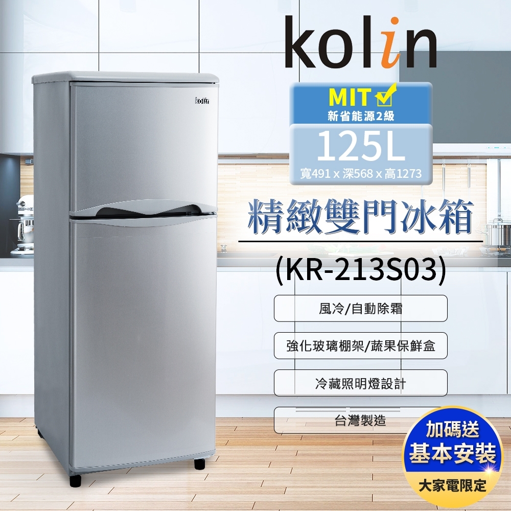 • 歌林雙門125L電冰箱集結精緻與實用,以隱藏式把手設計提升整體美觀。